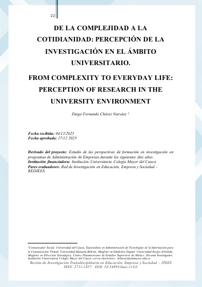 Chávez Narváez, D. F. (2026). II. DE LA COMPLEJIDAD A LA COTIDIANIDAD: PERCEPCIÓN DE LA INVESTIGACIÓN EN EL ÁMBITO UNIVERSITARIO . Revista De Investigación Transdisciplinaria En Educación, Empresa Y Sociedad - ITEES, 13(3). https://doi.org/10.34893/itees.v13i3.594